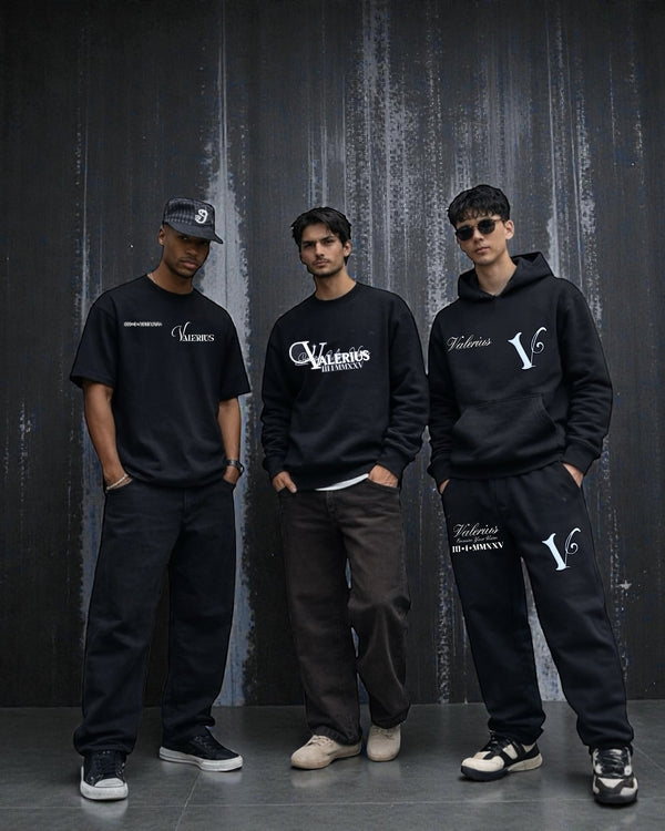 Our Vision: At Valerius, we combine the art of streetwear by fusing high fashion with urban culture, creating a style that speaks to those who demand more. We believe success is a mindset, and the way you dress should reflect your ambition. Our designs represent power, confidence, and exclusivity, ensuring that every piece you wear is a statement of dominance and distinction. Made with the finest materials to detail, our collections symbolizes aesthetics with timeless luxury.